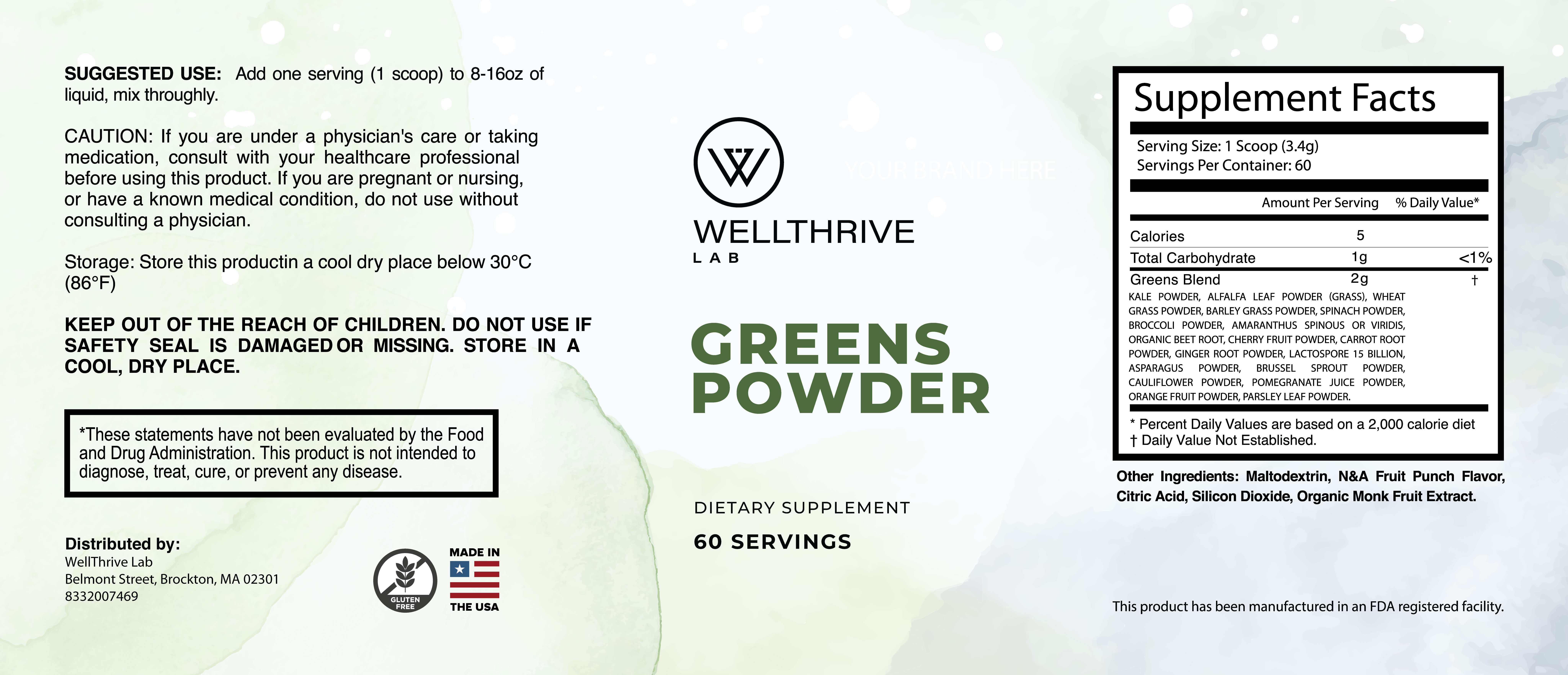 A convenient daily greens blend designed to support a balanced, nutrient-conscious lifestyle. Our Greens Powder makes it easy to add a variety of plant-based ingredients to your daily routine—all in one simple scoop. This blend features a mix of greens, vegetables, fruits, and botanicals, carefully combined to complement an active, healthy lifestyle. With ingredients like kale, spinach, broccoli, wheat grass, barley grass, and beet root, this greens blend is designed for adults who want an easy way to stay consistent with their daily nutrition habits. Simply mix with water, juice, or your favorite smoothie as part of your morning or post-workout routine.
